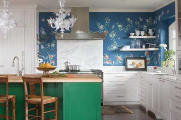 Для того, чтобы визуально расширить комнату стоит использовать белые тона. Если вам позволяет место и у вас открыты стены, стоит подумать о комбинированных обоях, нижнюю часть стен можно оформить в горизонтальную полоску. Комбинирование обоев на кухне снова в моде, поэтому эксперименты и комбинированная поклейка приветствуются.