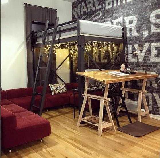Главная проблема таких мини-квартир — нехватка пространства. Чтобы решить ее, владельцы идут на всевозможные и необычные способы. Дизайнер из Чикаго Энтони Пол разместил кровать над угловым диваном, рядом с которым поставил еще и компьютер, совместив таким образом зону отдыха с рабочей.