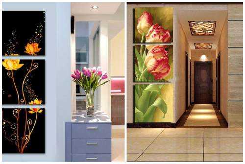 - Для прихожей выберите простые полотна. Это объясняется тем, что гости и жильцы не задерживаются в этом помещении надолго, поэтому тратить на оформление много сил и денег не стоит. В то же самое время стоит помнить, что прихожая- начало дома, поэтому изображение должно задавать тон общему впечатлению от жилища.