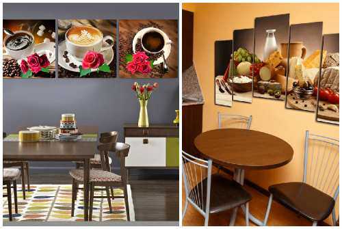 На кухне всегда кипит своя жизнь, даже можно сказать кипит, жариться и париться в прямом смысле этого слова. В силу такой активности следует позаботиться и о ее безопасности – на картину не должна попадать влага или же брызги жира, поскольку все это попросту испортит ее за пару месяцев. Наравне с этим ее стоит разместить на видноте, но и не подвергаться таким негативным факторам, как температура от плиты, жир и брызги от сковородки и так далее.