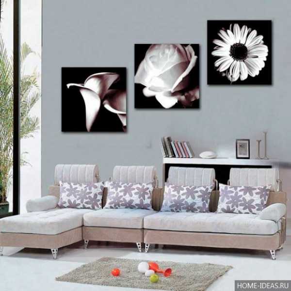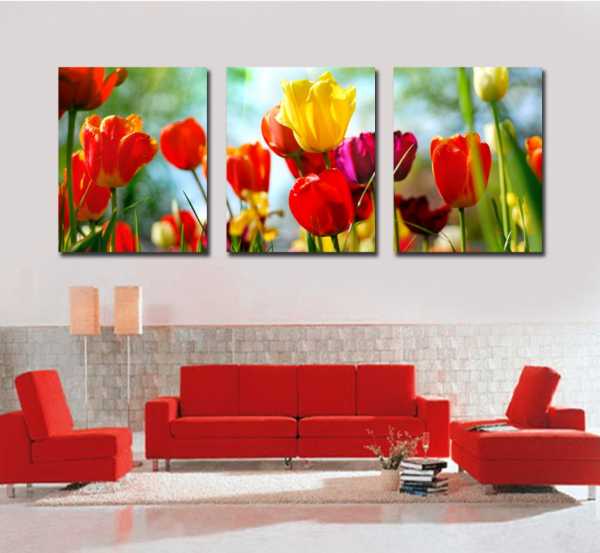 Цветочные мотивы в гостиной комнате также пользуются популярностью в декорировании помещения с использованием модульных картин – объединенные в своей общей теме, такие полотна могут разниться по стилю и цветовому оформлению. Современные декораторы советуют выбрать для оформления помещения цветок, который несет в себе определенный смысл и подтекст. Так лотос у китайцев служит символом здоровья и счастья, орхидея – гармонию внутри семейного очага. Цветы на модульных картинах в гостином зале – классика жанра, которая лаконично впишется в любой стиль и интерьер, и потому выбрав его, вы никогда не ошибетесь.
