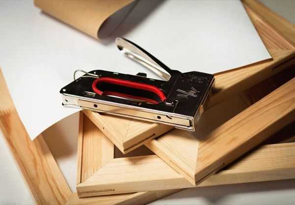 Как правило, крепление холста осуществляется с использованием скобок мебельного степлера.