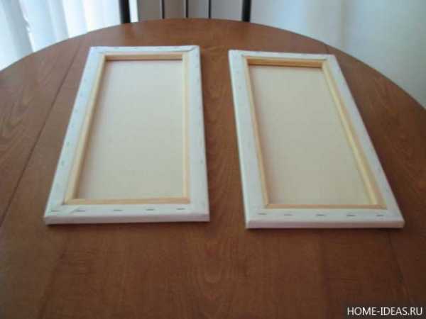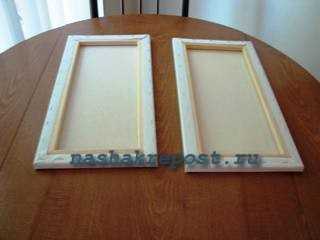 - Подготовьте необходимое количество деревянных рамок нужного размера. На них и будет крепиться полотно. Помните о том, что основа должна быть меньше декоративной части. Вы можете заменить рамы фанерой или ДСП аналогичного размера.