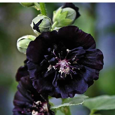 Сорт шток-розы образует почти черные цветки. Одна из наиболее популярных разновидностей мальвы мускусной.