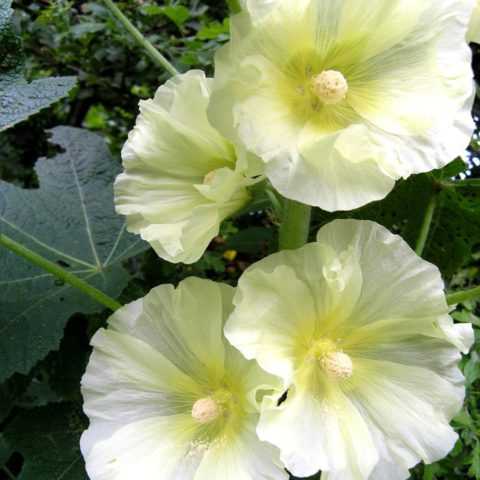 Летом шток-розы и мальва мускусная требуют подвязки к опорам. Осенью необходимо срезать отмершие надземные части растений.