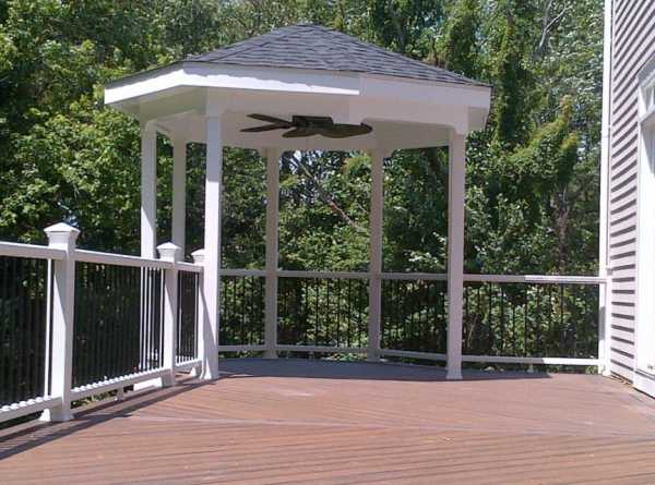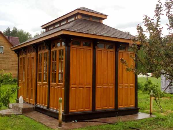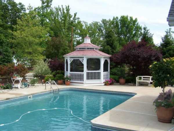 Надо учесть и то, что беседка, которая расположена недалеко от водоемов, обязана иметь обработанную крышу специальными влагоотталкивающими средствами.