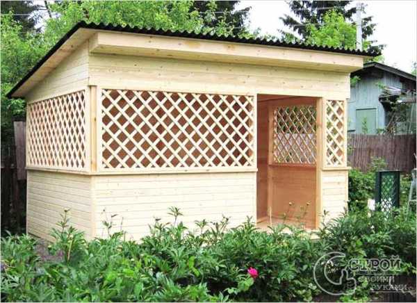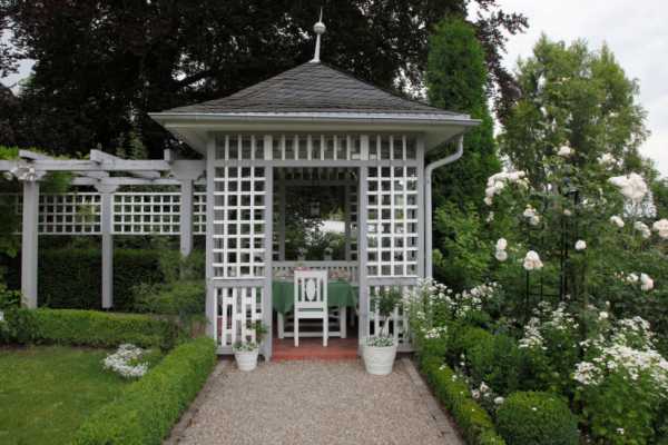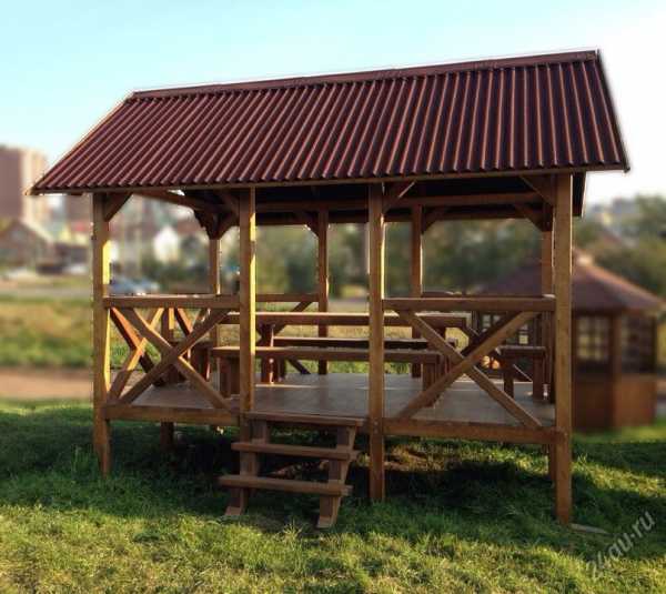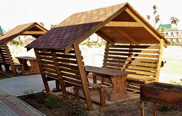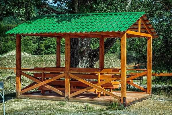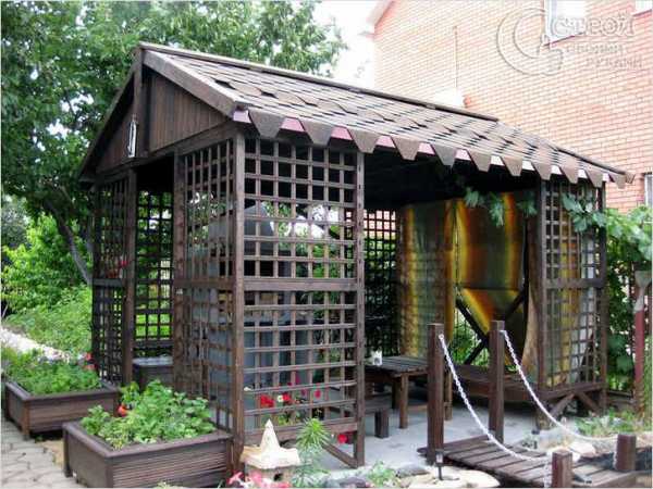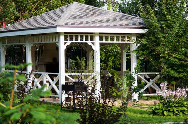 В первую очередь мы рассмотрим беседки из различных материалов, а затем остановимся на кровле для двускатных крыш. Про строительство мы поговорим в самом в конце.