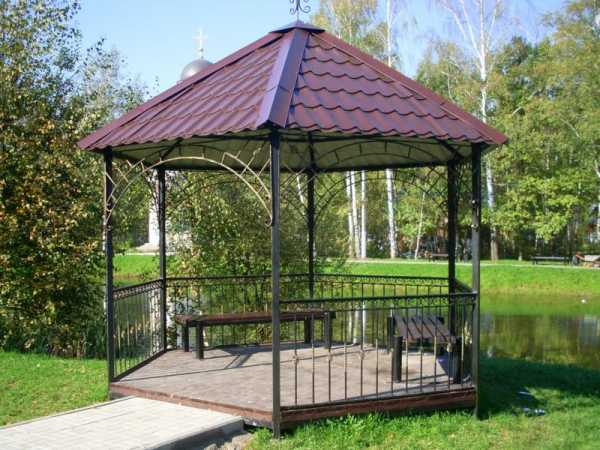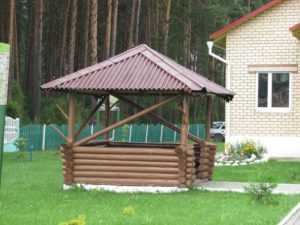 От того, какое кровельное покрытие будет выбрано, зависит то, насколько конструкция будет надежной, сколько лет она сможет прослужить. Свойства материала будут напрямую влиять на эксплуатационные характеристики беседки. Профнастил или металлочерепица – не лучший вариант, так как они имеют плохую звукоизоляцию, во время дождя будет создаваться эффект «барабанной дроби».
