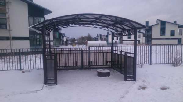Для кованых конструкций двускатный вариант используется редко. Обычно изготавливают дугообразную кровлю из поликарбоната либо переходят на четырёхскатный вальмовый вариант с металлочерепицей.