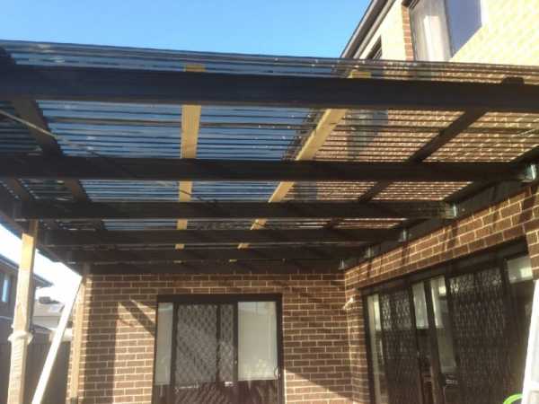 Один из самых популярных материалов для односкатных навесов, пристроенных к дому.