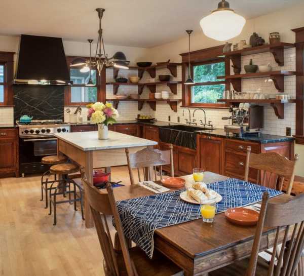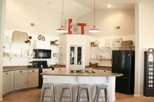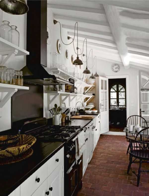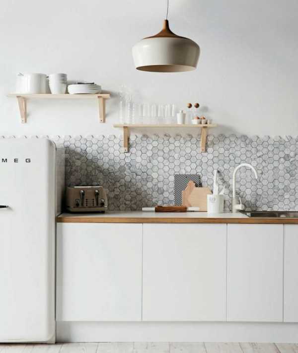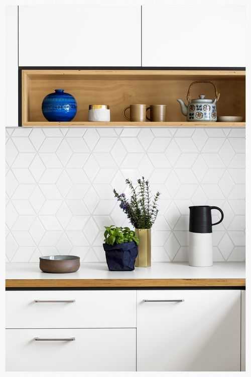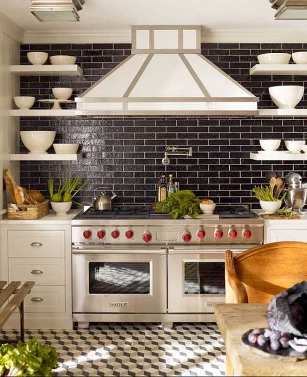 Отличной идеей для кухонного интерьера является использование разных видов полок. Разных видов по размещению.