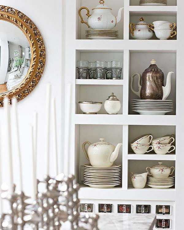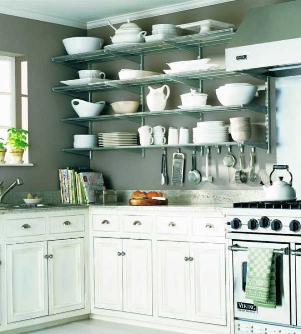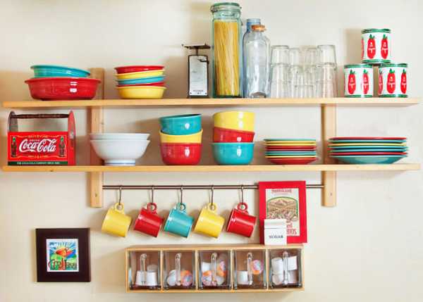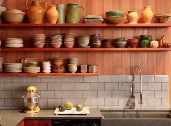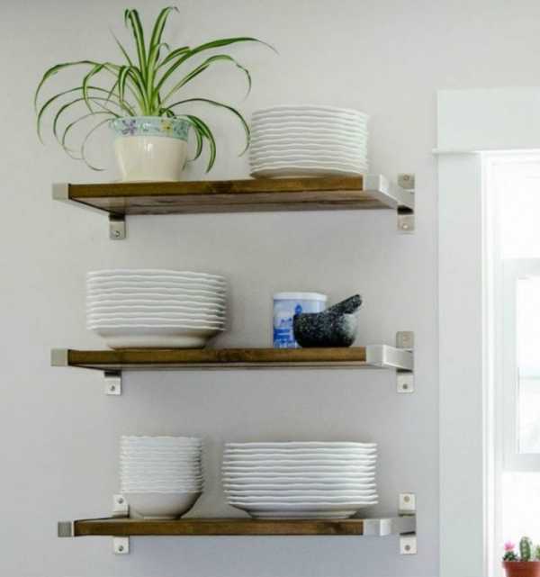 Если вы можете похвастать красивой домашней утварью, — открытые полки для васВиды полок по используемому материалу: