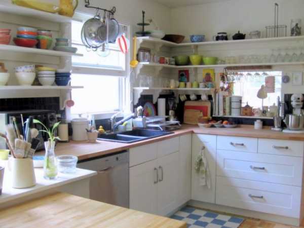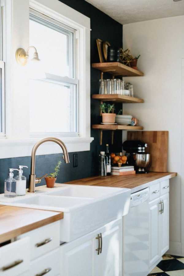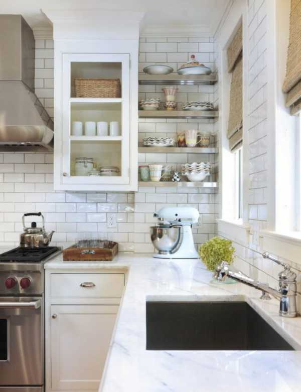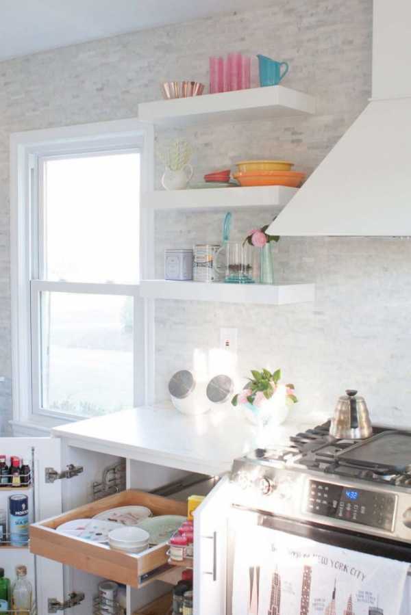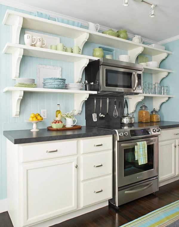 Установите открытые полки на маленькой кухне и все самое нужное всегда будет у вас под рукой