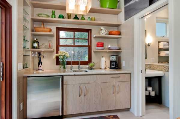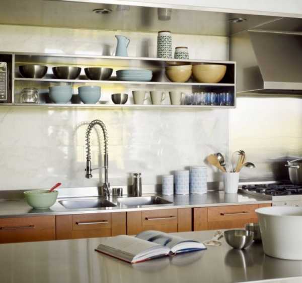 Открытые полки на кухне призваны стать частью интерьерной мебели, либо элементом декорации для украшения кухонного пространства.