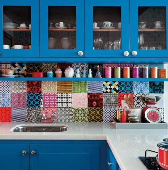 Яркие полки будут хорошо смотреться на фоне чисто белой или черной кухни. Но помните, что перенасыщение ярким цветом очень опасно. Поэтому пересмотрите фото предложенных сочетаний ярких цветов.