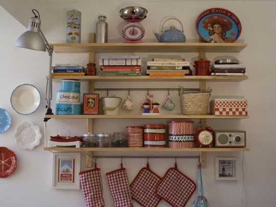 - выполняя функцию декоративных элементов, полки быстро загрязняются. Поэтому не нужно располагать их близко к плите;