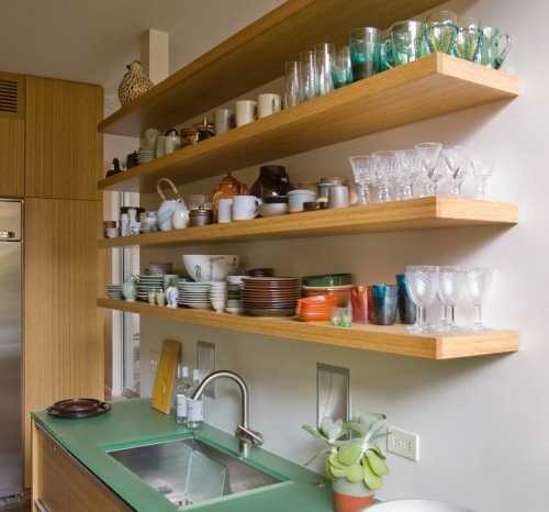 Открытые полки для кухни — особая деталь интерьераКакие бывают полки?