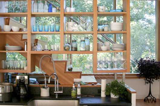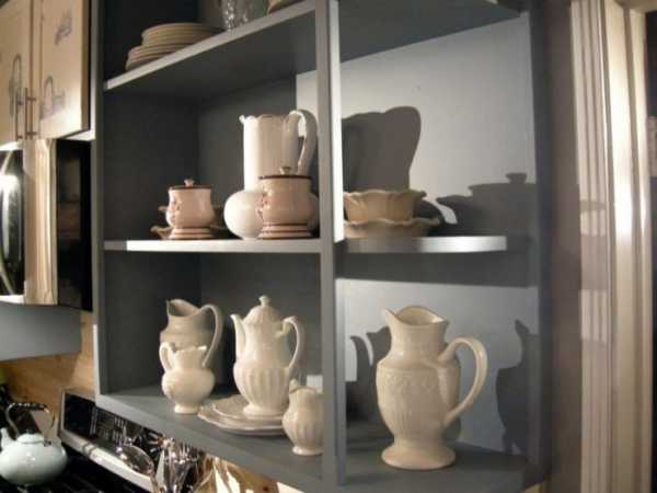 - полки открытого типа требуют размещения на них исключительно красивой посуды.