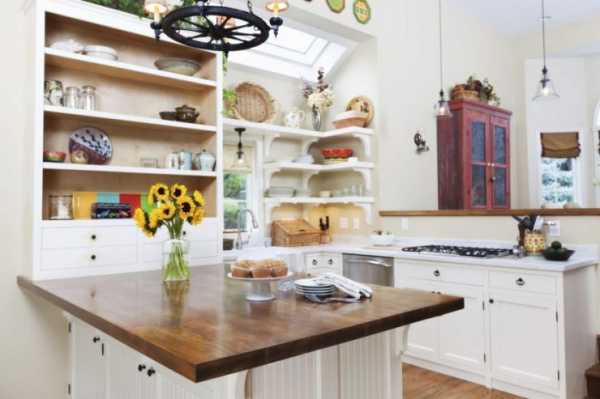 А вот кантри, лофт допускают использование кухонной утвари, специй, выставленных на обозрение.