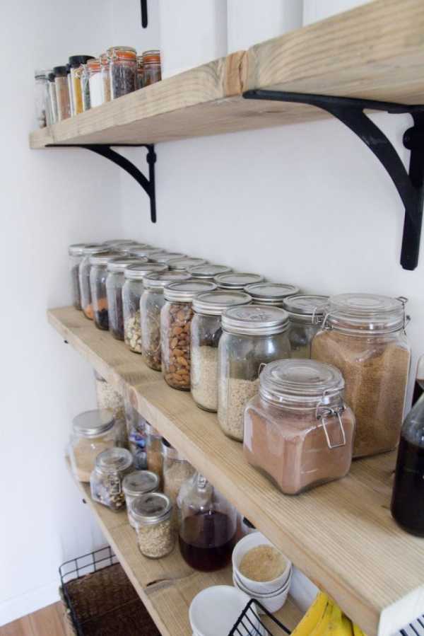 На подобных конструкциях не место упаковочной продукции из пластика и бумаги. Крупы и другие продукты питания желательно поместить в оригинальную ёмкость из керамики, стекла.