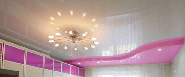 Натяжные потолки на кухне двухуровневые, фото и отзывы