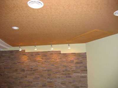 - декоративная штукатурка является очень популярным методом отделки. Ее наносят на предварительно выравненный потолок, хотя качестве поверхности не играет большой роли. Благодаря рельефу, штукатурка замечательно маскирует все неровности, в результате чего получаются отличные потолки и чтобы их получить приходится приложить минимальное количество усилий, касающихся шпатлевки;