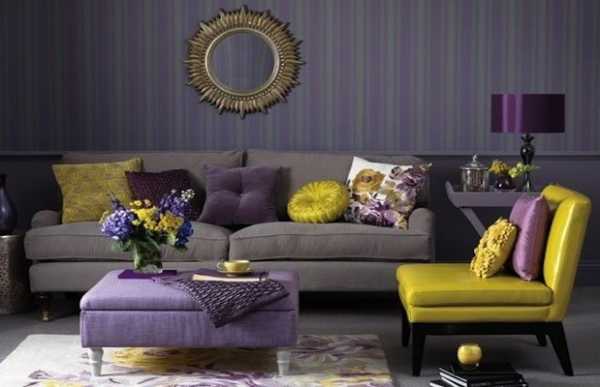 Сложные цвета сочетаются со всеми, входящими в их состав и их производными. Например, для фиолетового комбинирование в интерьере можно делать розовым, голубым, красным и синим. Сочетается он и со светлыми оттенками коричневого, имеющего одинаковую с ним основу – красный.