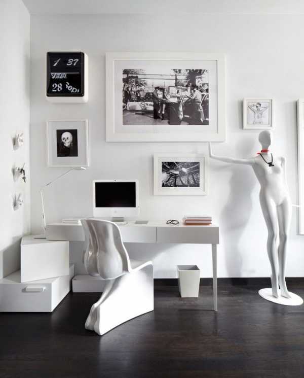Черно-белый хай-тек в просторном домашнем кабинете