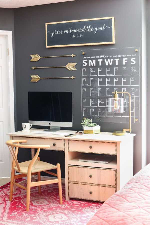 Магнитная доска — очень удобное и функциональное приспособление в рабочей зоне. А мотивирующие надписи, просто приятный глазу декор — придадут энергии