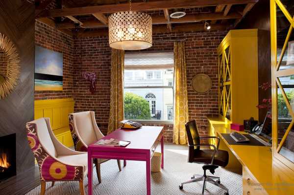 Если вы сомневаетесь, что сможете свыкнуться со стационарной яркостью в вашем кабинете, необязательно делать капитальную отделку, просто разбавьте пространство каким-либо декораторским аксессуаром. Например, желтой кушеткой необычной формы с зелеными подушками или картинами художников-экспрессионистов. Если вам надоедят эти предметы, вы всегда можете передислоцировать их в другое место.