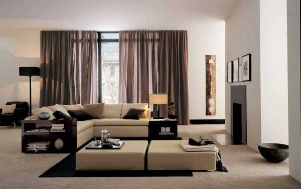 - в гостиной и зале однотонные обои бежевых, коричневых, бордовых оттенков в сочетании с коврами, мягкой мебелью, подушками, покрывалами и пуфами создадут ощущение глубины пространства, тепла и уюта;