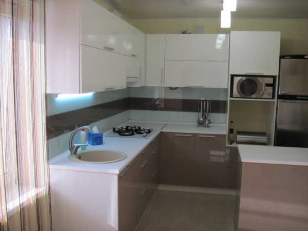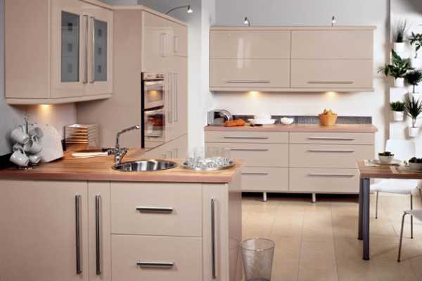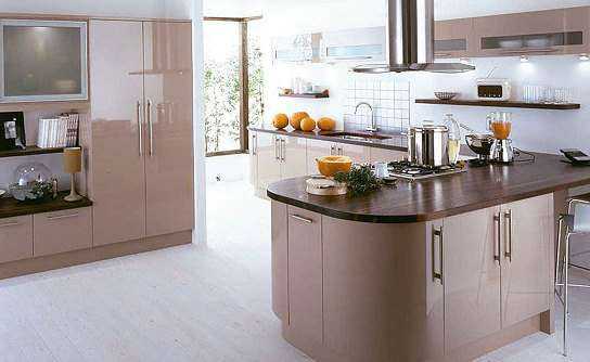 Кухни капучино глянец, это лучший вариант для маленьких кухонь или кухни в студию, а так же для длинных кухонь.
