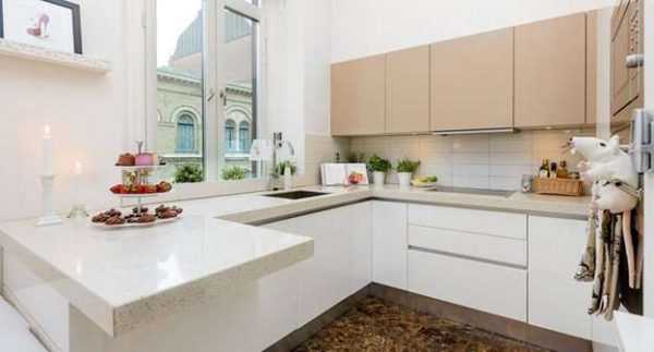 Прекрасно смотреться кухня с барной стойкой в дизайне светлого тона.