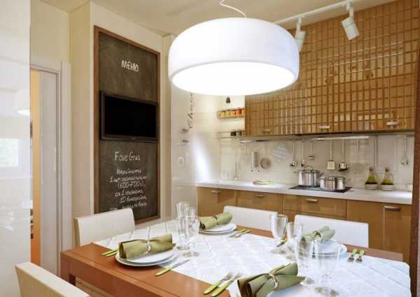 Шторы и занавески на окнах могут быть от бежевого или молочного оттенка до самого темного коричневого, самое главное, чтоб они не сливались с цветом стен. Вкрапления зеленого очень эффектно смотрятся на кухне светлых тонов, поэтому комнатные растения станут как нельзя кстати. Они освежат комнату и добавят ярких красок. Очень красиво смотрятся полки с зеркалами декорированные дополнительной подсветкой, создается эффект бесконечного светового коридора.
