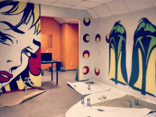 Маленький секрет: комнату в стиле поп-арт можно декорировать своими руками, используя трафарет и баллоны с краской