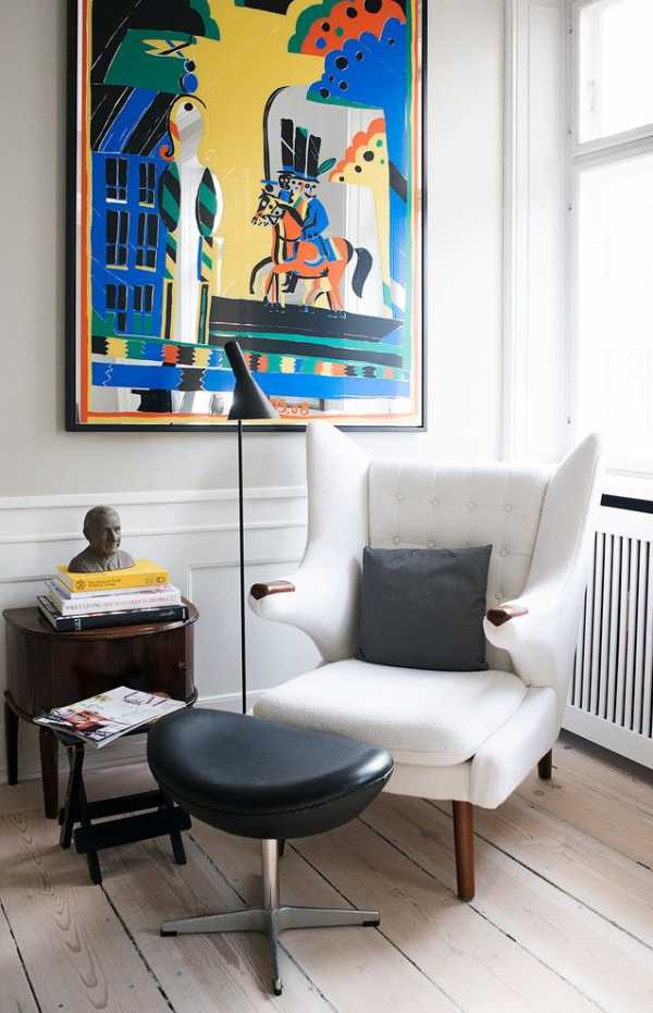Небольшая люстра в светлом интерьере в стиле поп-арт