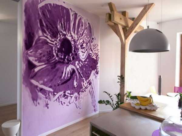 Также сегодня довольно популярны арт фотообои для стен с имитацией художественной росписи или рисунка. Разместив такое полотно на одной из стен помещения, можно придать ей необычности и расширить визуально ее границы.