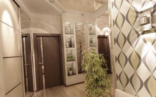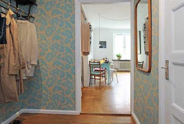 Подобный приме придаст коридору максимальный объем, поможет спрятать от любопытных глаз все недостатки и изъяны, имеющиеся на стене. Если подобрать светлые шпалеры, которые имеют контрастный мелкий рисунок, они сделают прихожую визуально более просторной, к тому же на них не будут заметны капельки пыли и грязи.