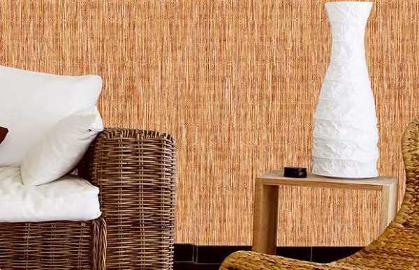 Бамбуковые обои отлично комбинируются с гладким винилом близкого оттенка