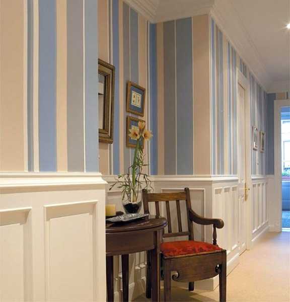 Среди самых востребованных идей, связанных с применением полосатых отделочных материалов для стен, отметим разделение стены на две части. Если вы не уверены в том, что сумеете сами определить уместность понравившихся вам обоев в полоску в вашем коридоре, обратитесь к специалисту. Современные отделочные материалы, предлагаемые на виниловой или флизелиновой основе, имеют достаточно высокую цену, поэтому лучше узнать мнение специалистов до того, как тратить деньги и силы на ремонтные работы, чтобы рассчитывать на положительный результат.