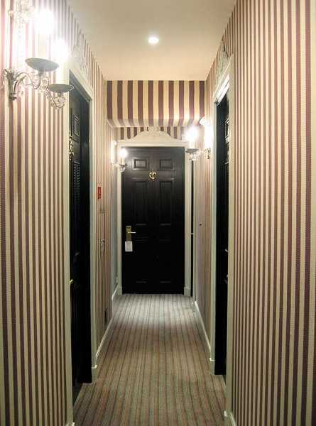 Кроме того, нежелательно загромождать коридор многочисленными элементами мебели. Если стены поклеены светлыми полосатыми шпалерами, то мебель и напольное покрытие должны иметь темные цвета.