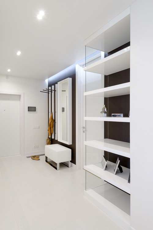 В типовой квартире подобной планировки небольшой коридор. Для оформления такой комнаты можно воспользоваться контрастными тонами. Подобный прием интерьерного дизайна в таких помещениях не только придаст коридору индивидуальность и уникальность, но и будет довольно практичным решением.