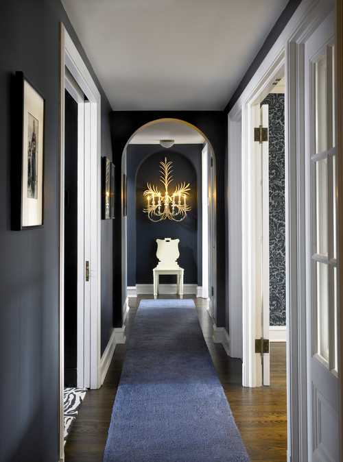 Впрочем, бояться темных тонов тоже не стоит. Глубокой, насыщенный цвет привнесет интригу даже в самый невзрачный коридор. В союзе с белыми дверями и плинтусами он добавит в интерьер нотку аристократизма.