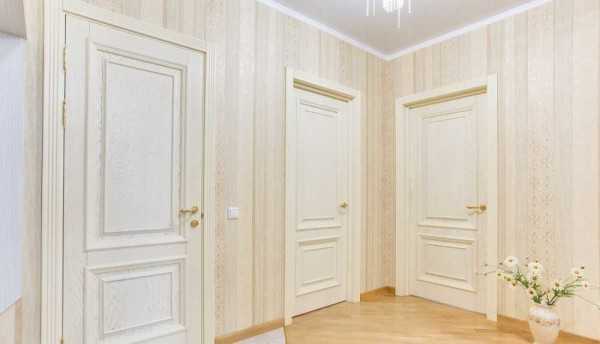В коридоре со светлыми дверьми органичнее смотрятся светлые оттенки