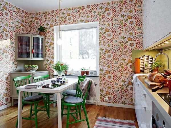 Обои в мелкий цветочек подходят не для каждого стиля кухни