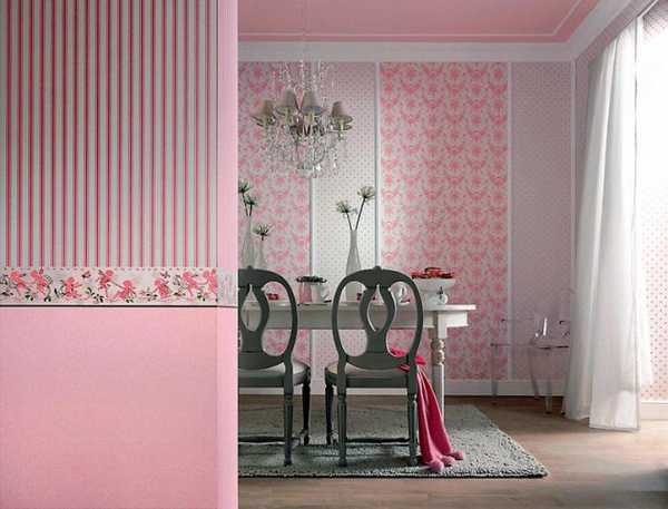 Цветочные обои нежно-розового цвета идеально завершат интерьер кухни в стиле романтик