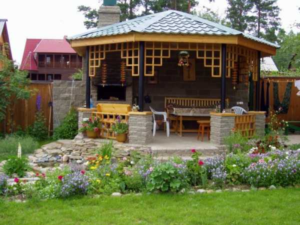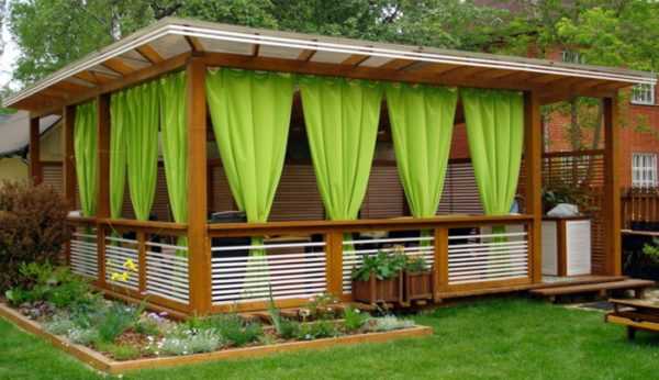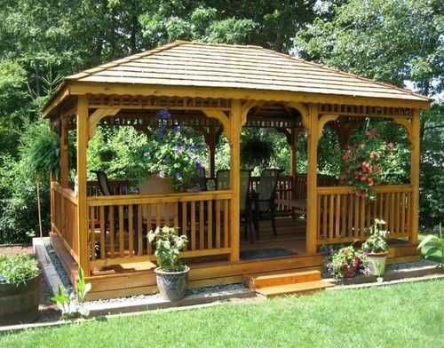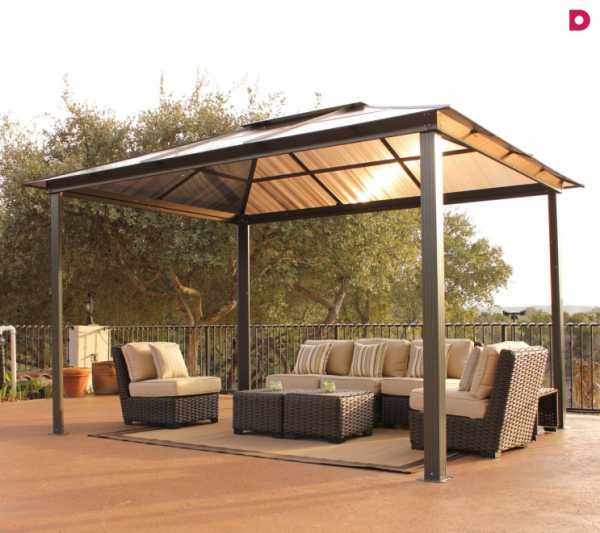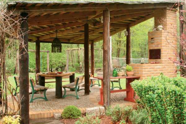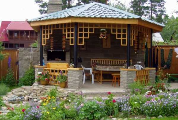 ΠΡΠΎ Π»Π΅ΡΠ½ΠΈΠΉ Π²Π°ΡΠΈΠ°Π½Ρ Π±Π΅ΡΠ΅Π΄ΠΎΠΊ ΠΈΠ· ΠΌΠ΅ΡΠ°Π»Π»Π° ΠΈΠ»ΠΈ Π΄Π΅ΡΠ΅Π²Π°. ΠΠ½Π° Π½Π΅ ΡΠΏΠ°ΡΠ΅Ρ ΠΎΡ ΡΠΈΠ»ΡΠ½ΠΎΠ³ΠΎ Π²Π΅ΡΡΠ° ΠΈΠ»ΠΈ Π»ΠΈΠ²Π½Ρ, ΡΠ°ΠΊ ΠΊΠ°ΠΊ ΡΡΠΎ ΡΠ΅Π·ΠΎΠ½Π½ΠΎΠ΅ ΡΠΎΠΎΡΡΠΆΠ΅Π½ΠΈΠ΅. Π€ΡΠ½ΠΊΡΠΈΠΈ ΡΠ°ΠΊΠΎΠ³ΠΎ ΡΡΡΠΎΠ΅Π½ΠΈΡ β ΠΏΡΠΎΠ²Π΅Π΄Π΅Π½ΠΈΠ΅ ΠΏΠΈΠΊΠ½ΠΈΠΊΠΎΠ², ΡΠ΅ΠΌΠ΅ΠΉΠ½ΡΡ ΠΏΡΠ°Π·Π΄Π½ΠΈΠΊΠΎΠ² Π² ΡΠ΅ΠΏΠ»ΠΎΠ΅ Π²ΡΠ΅ΠΌΡ Π³ΠΎΠ΄Π° Π½Π° ΠΎΡΠΊΡΡΡΠΎΠΌ Π²ΠΎΠ·Π΄ΡΡ Π΅. ΠΠΎΠΊΡΡΠ³ Π½ΠΈΡ ΡΠ°ΡΡΠ΅Ρ ΠΌΠ½ΠΎΠ³ΠΎ ΡΠ²Π΅ΡΡΡΠΈΡ ΡΠ°ΡΡΠ΅Π½ΠΈΠΉ, ΠΏΠ»ΠΎΠ΄ΠΎΠ²ΡΡ Π΄Π΅ΡΠ΅Π²ΡΠ΅Π² ΠΈ Π·Π΅Π»Π΅Π½ΠΎΠΉ ΡΡΠ°Π²Ρ.