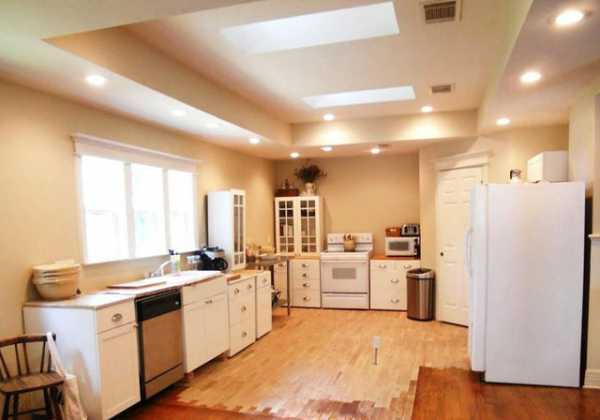 - Несколько приборов над рабочей поверхностью и одна люстра, обеспечивающая светом всю остальную площадь.