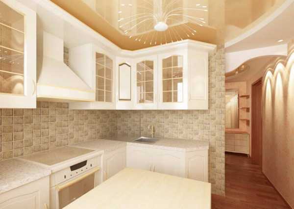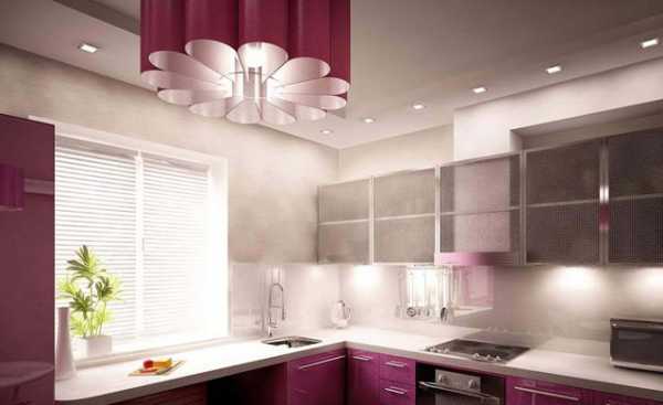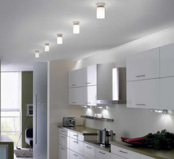 В соответствии с расположением потолочных светильников на кухне освещение бывает: