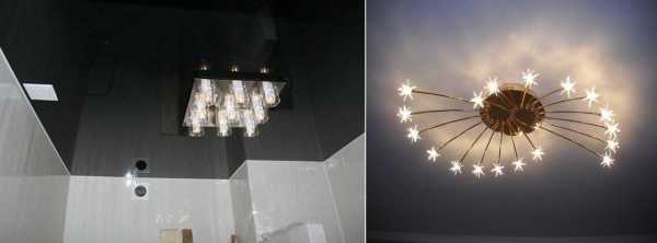 Совет! Если установить светильник на расстоянии более 10 см от поверхности полотна, то допускается использование ламп большей мощности. Такую возможность дают подвесные светильники.